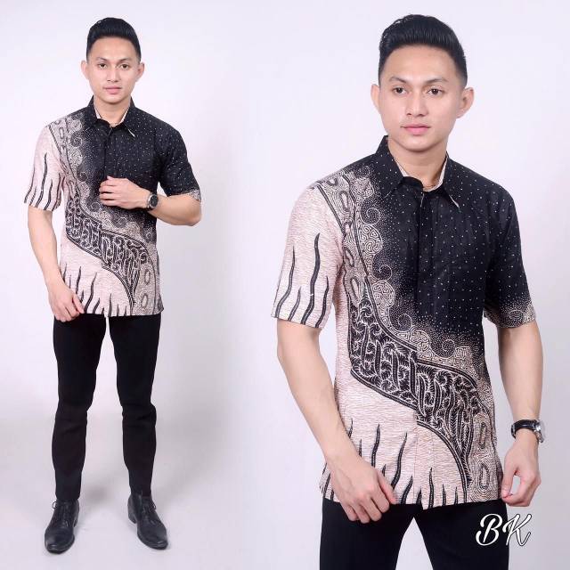 Name: Kemeja Batik Modern Pria Lengan Pendek M L Xl Motif Hitam Putih Cream