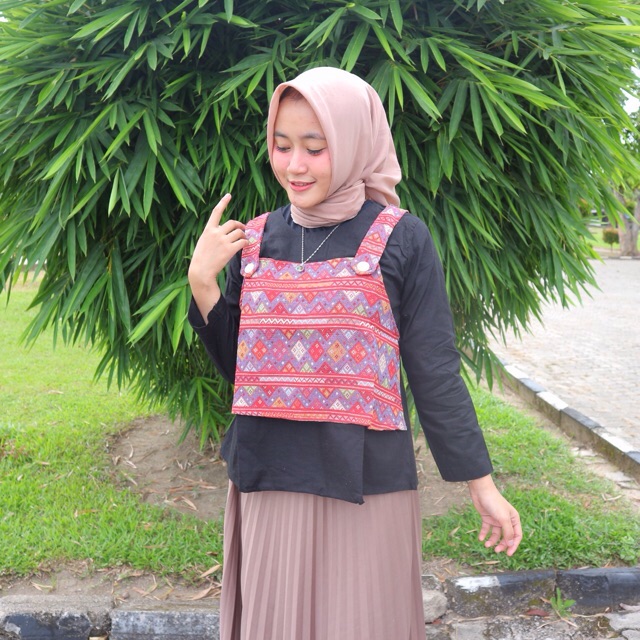 New! Blouse dgn rompi bahan tenun π rompi nya nempel ya. Lucu bgt lagi hitsππ