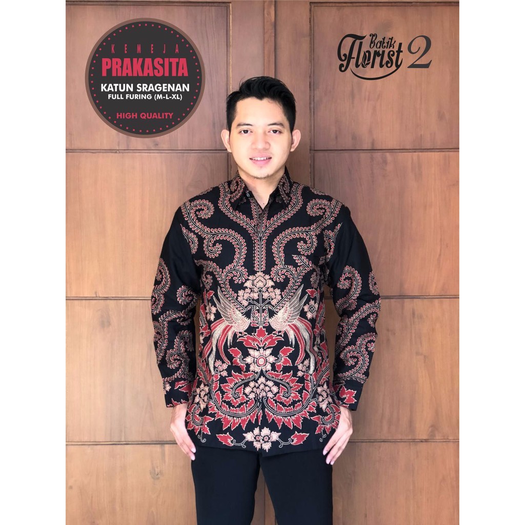 Name: Kemeja Batik Prakasita Kuncoro Merah Batik Solo Halus Full Furing Seragam Batik