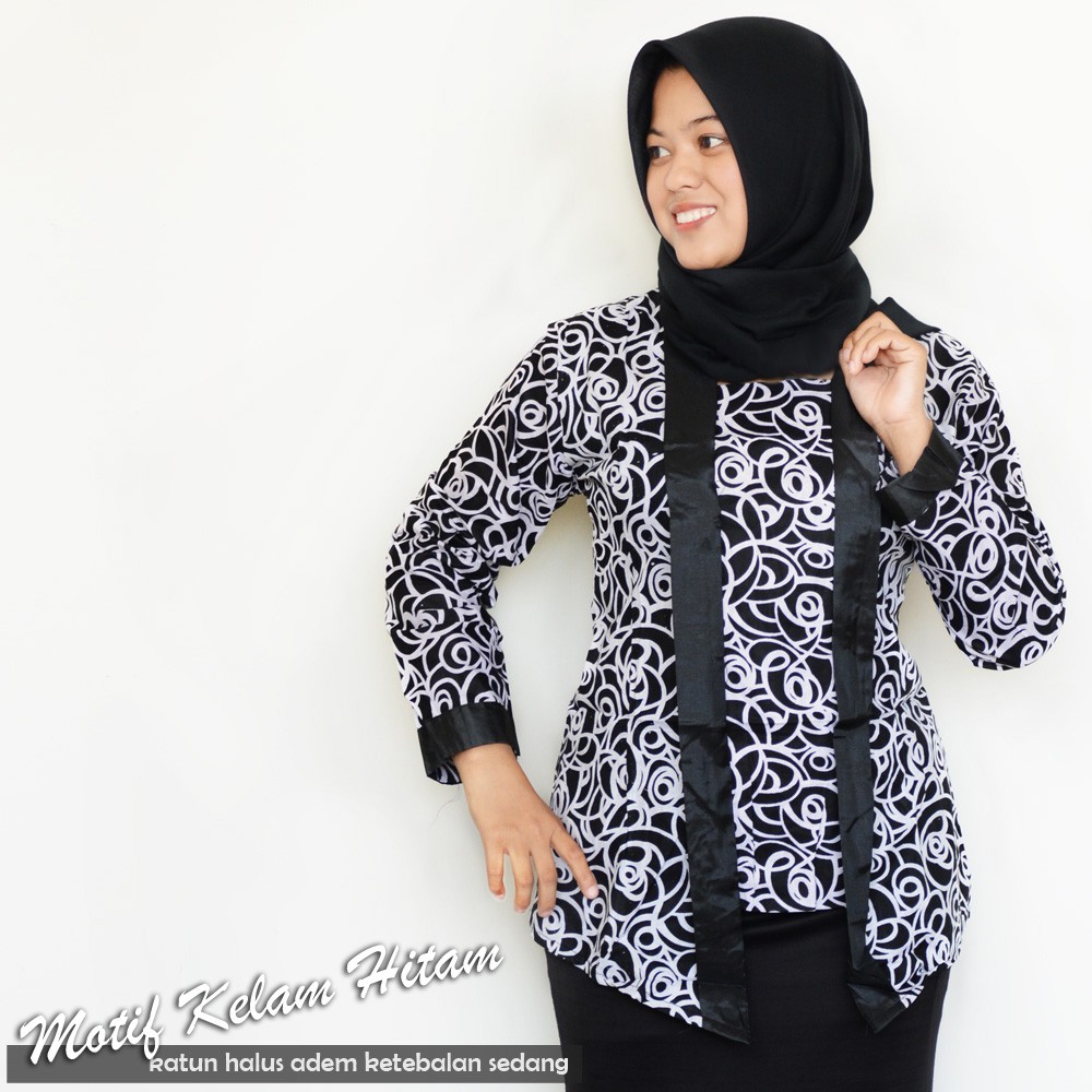 Name: Trolistore Xxl Grosir Batik Wanita Motif Kelam Batik Cewek Wanita Lengan Panjang Warna Hitam Putih