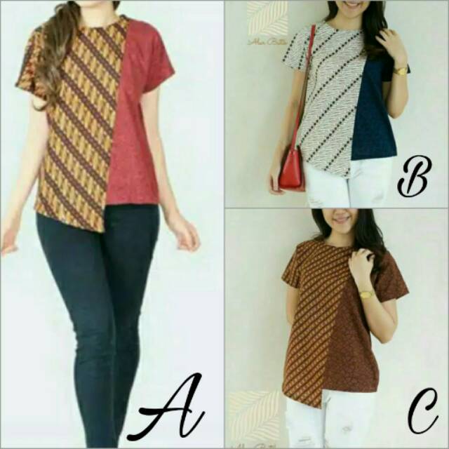 Name: Blouse Jeje Soraya Kombinasi Batik Seragam Kantor Kerja Ethnic Vintage