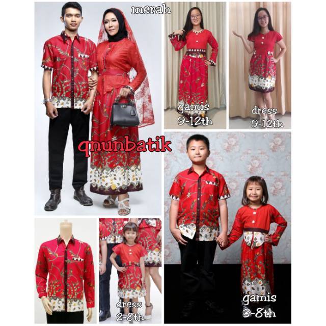Name: Qnunbatik Batik Keluarga/family Gamis Muslim Adelia Madura Merah