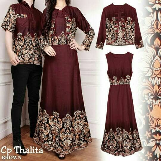 Name: Baju Couple Muslim / Gaun Batik Gamis / Pasangan Couple Batik Thalita Brown